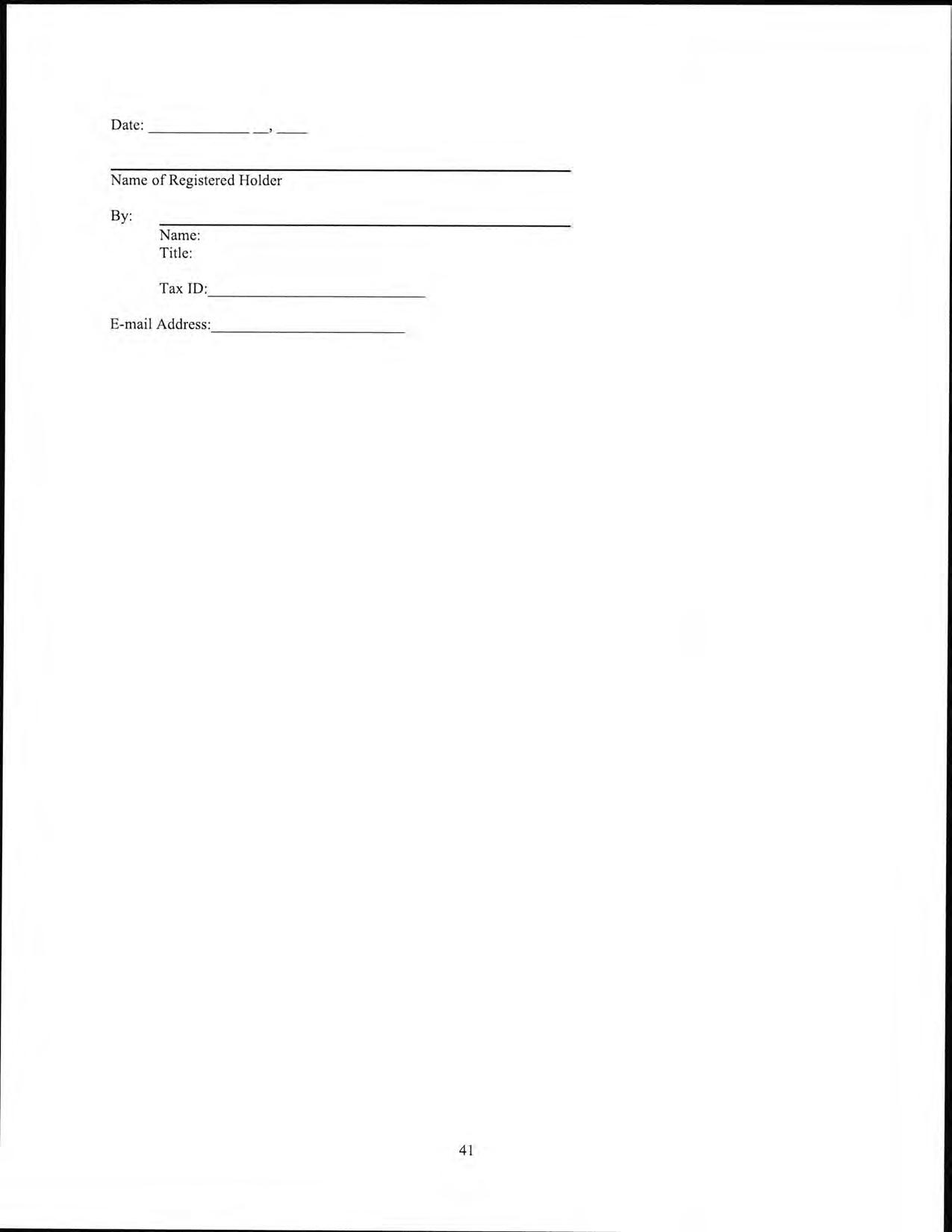 Date: · 41 Name of Registered Holder By: Name: Title: Tax T D: E - mail Address: