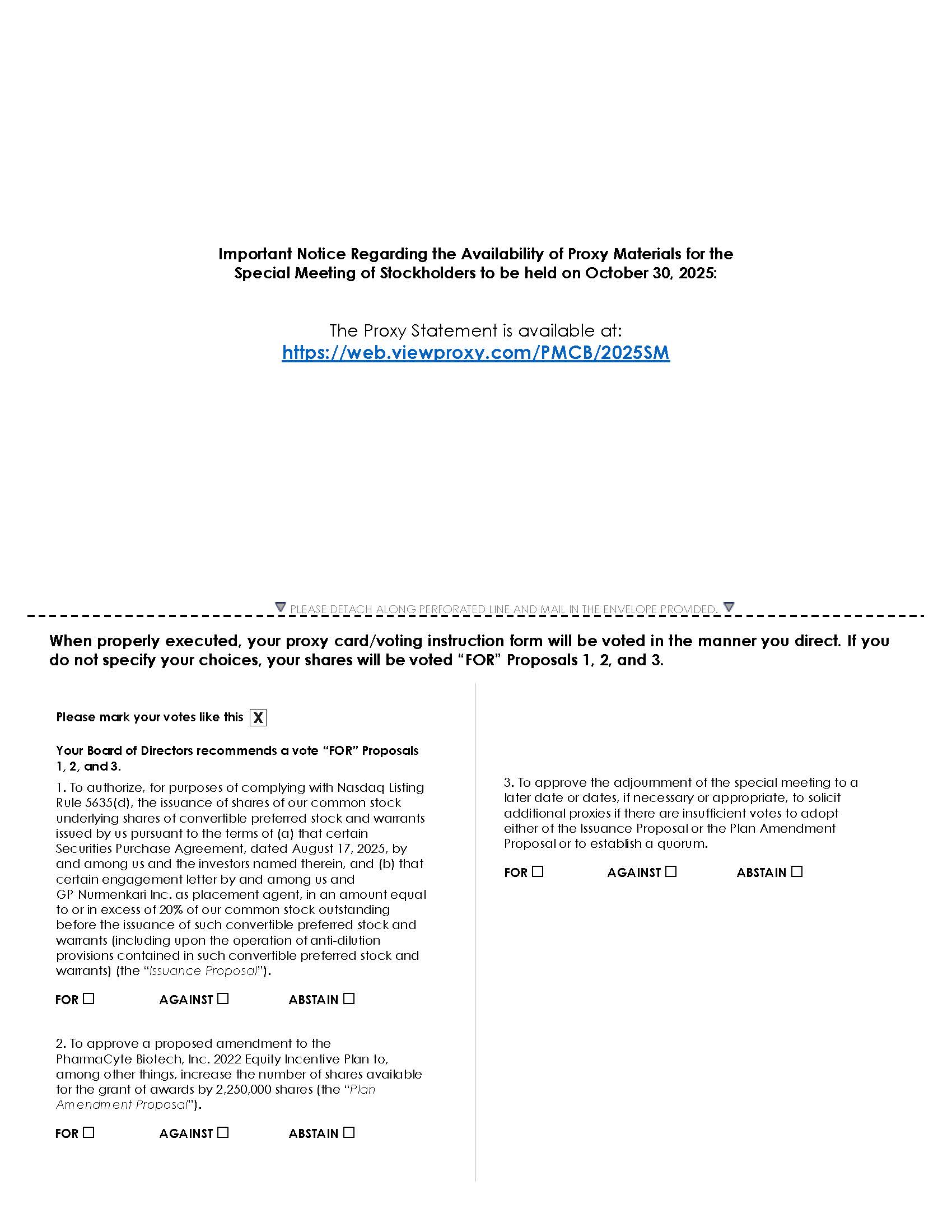 You are cordially invited to attend a special meeting of stockholders of PharmaCyte Biotech, Inc. (“PharmaCyte”) to be held at 11:00 a.m. ET on Thursday, October 30, 2025.